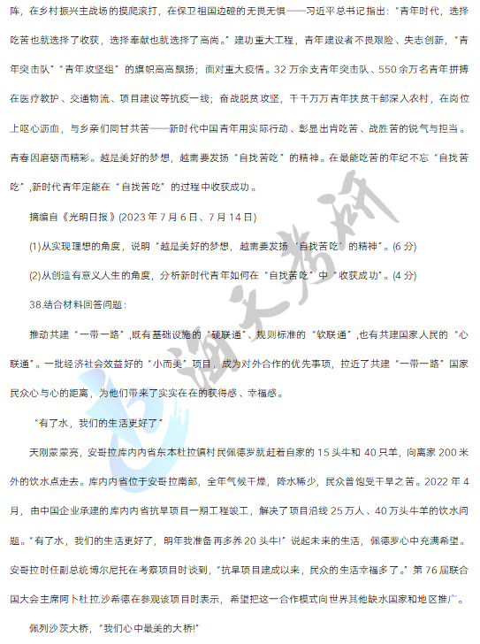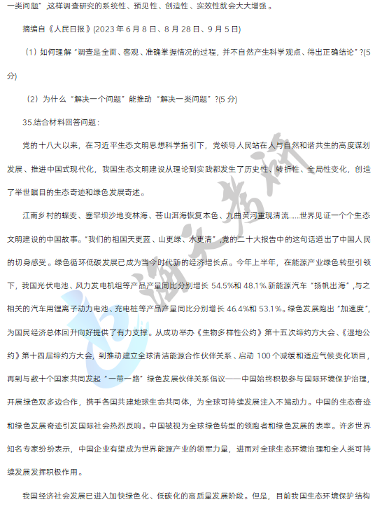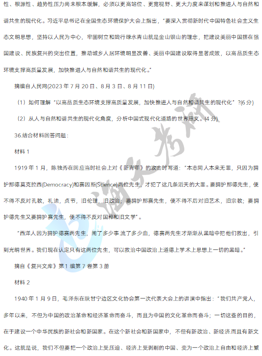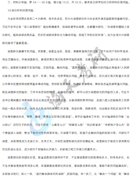 三、材料分析题,第34-38小题,每小题10分,共50分。要求结合所学知识分析材料回答问题